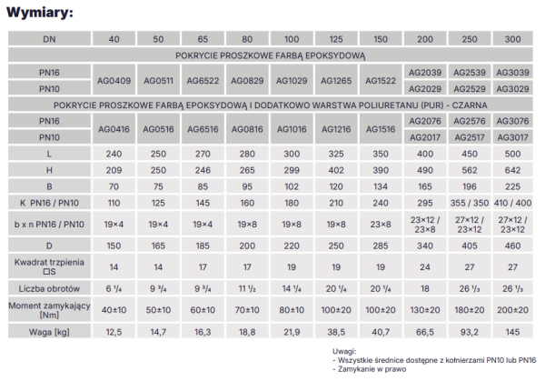 | DN | 40, 50, 65, 80, 100, 125, 150, 200, 250, 300 |