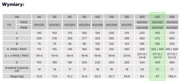 ZASUWA DO WODY ECOVALVE™ KOŁNIERZOWA F4 DN250 PN16