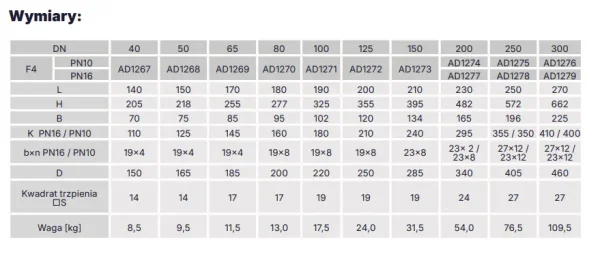 | DN | 40, 50, 65, 80, 100, 125, 150, 200, 250, 300 |